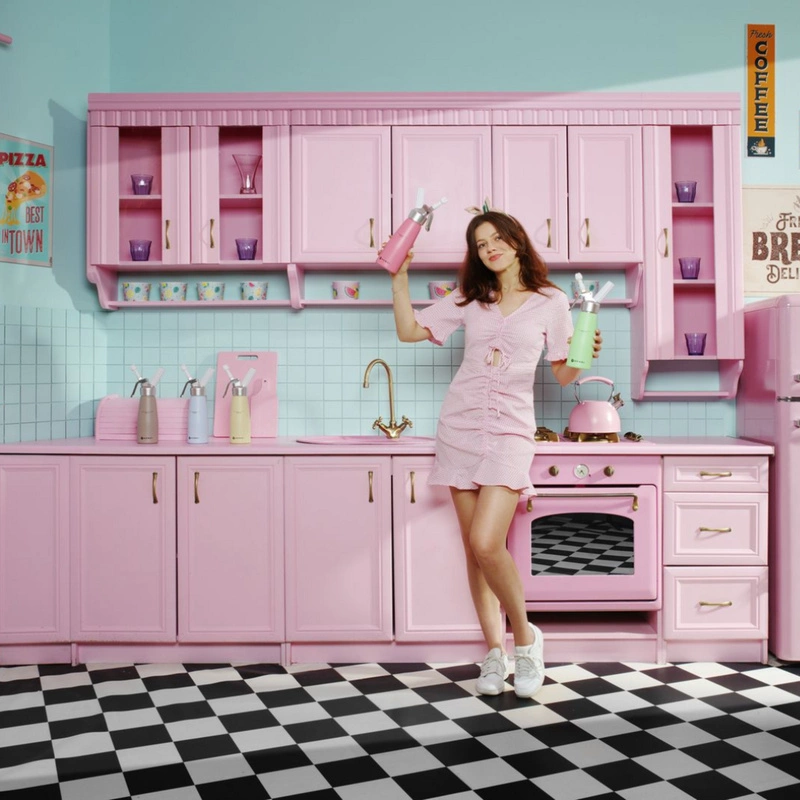 Sifon pro přípravu šlehačky a krémy, omáčky a pěny. Vyrobeno výhradně z hliníku. Barva pouzdra fialová - edice Kurt Scheller. Nelze v něm připravovat horké omáčkyów.