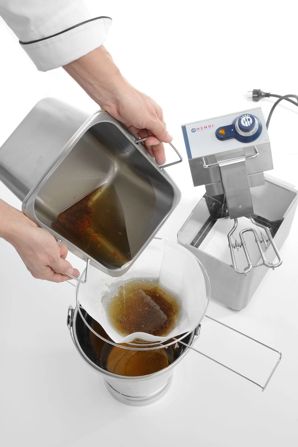 Filtry pro fritézy Hendi. Jsou vyrobeny ze syntetického hedvábí a zaručují trvanlivost a tepelnou odolnost až do 200 °C. Filtry účinně zachycují nečistoty, například částečky potravin. V důsledku filtrace je možné přefiltrovaný olej znovu použít ke smažení. Filtry mají prohlášení o schválení pro potraviny. Balení obsahuje 50 filtrů o rozměrech 25,4 × 25,4 cm.