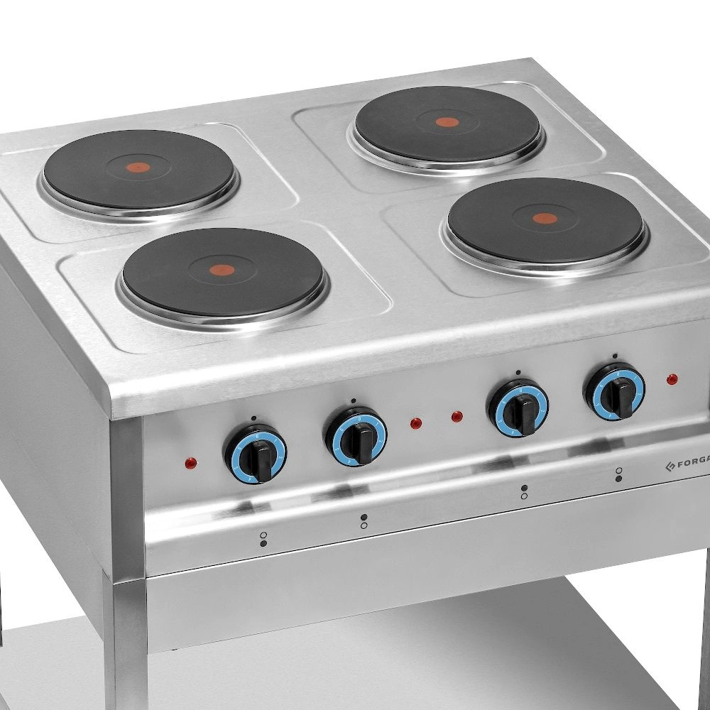 Gastronomická elektrická kuchyně 4-plotýnková FORGAST FG09440 je pokročilé zařízení určené pro profesionální kuchyně. Vybavena čtyřmi odolnými topnými plotýnkami a vysokým celkovým výkonem umožňuje rychlou a efektivní přípravu různých jídel. Skvěle se hodí jak do menších restaurací, tak do velkých gastronomických provozů, kde je důležitá spolehlivost, bezpečnost a pohodlí při používání.