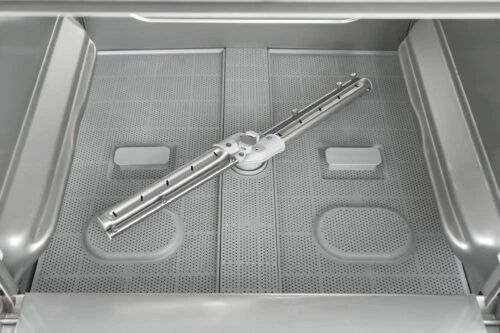 Plášť a klíčové prvky myčky jsou vyrobeny z odolné nerezové oceli AISI 304, která se skvěle osvědčuje v prostředí profesionální gastronomie. Použití dvojité stěny dveří zvyšuje tepelnou izolaci a zaoblená vana usnadňuje odvod nečistot, což je důležité při častém mytí nádobí různých velikostí. Díky možnosti vkládání náplně o výšce až 34 cm je myčka ideální pro mytí velkých mís, GN nádob nebo vysokých hrnců, což ocení restaurace s pestrým menu.