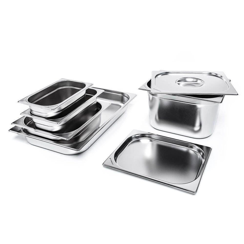 Tato nádoba je ideální pro přepravu jídel v termoskách, skladování surovin v chladničkách i ohřívání pokrmů ve vodních lázních. Její univerzální rozměr umožňuje flexibilní sestavování sad v hromadném stravování i v restauracích typu self-service. Vhodná hloubka umožňuje skladování jak tekutých, tak pevných potravin.