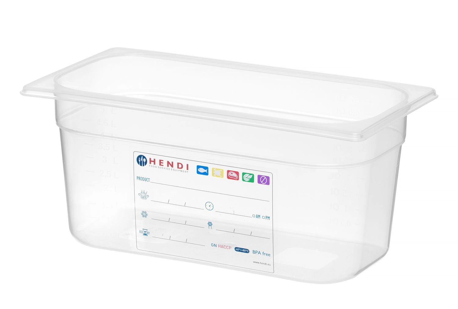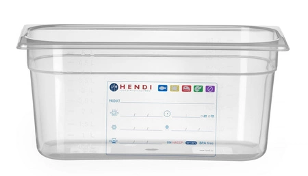 GN 1/3 HACCP kontejner o hloubce 15 cm z průhledného polypropylenu.  Vložený štítek pro sledování procesu skladování. Neabsorbuje pachyóani chutěó.