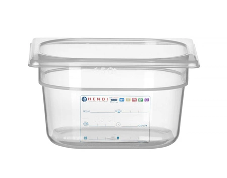 Nádoba GN 1/6 HACCP o hloubce 10 cm z průhledného polypropylenu. Vložený štítek pro sledování procesu skladování. Neabsorbuje pachyóani chutěó.