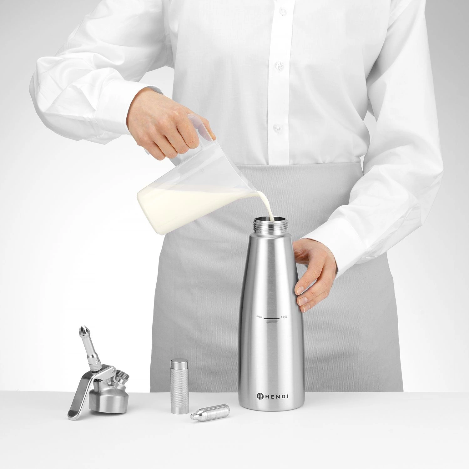 Sifon pro přípravu šlehačkyNerezový podnos je ideální pro výrobu krémů, omáček a pěn. Ideální pro kavárny, baryós, restaurace, zmrzlinárny, bistra a vaflárny. V sifonu lze připravovat také horké omáčky.
