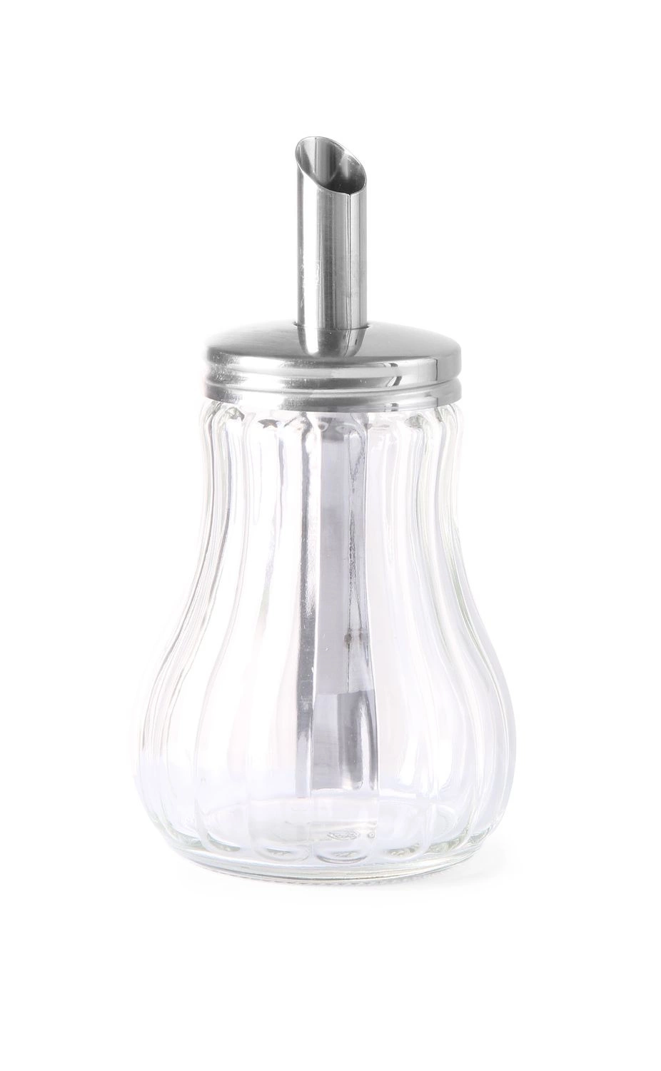 Cukřenka o objemu 0,2 l s dávkovačem. Vyrobeno ze skla. Víko z nerezové oceli.