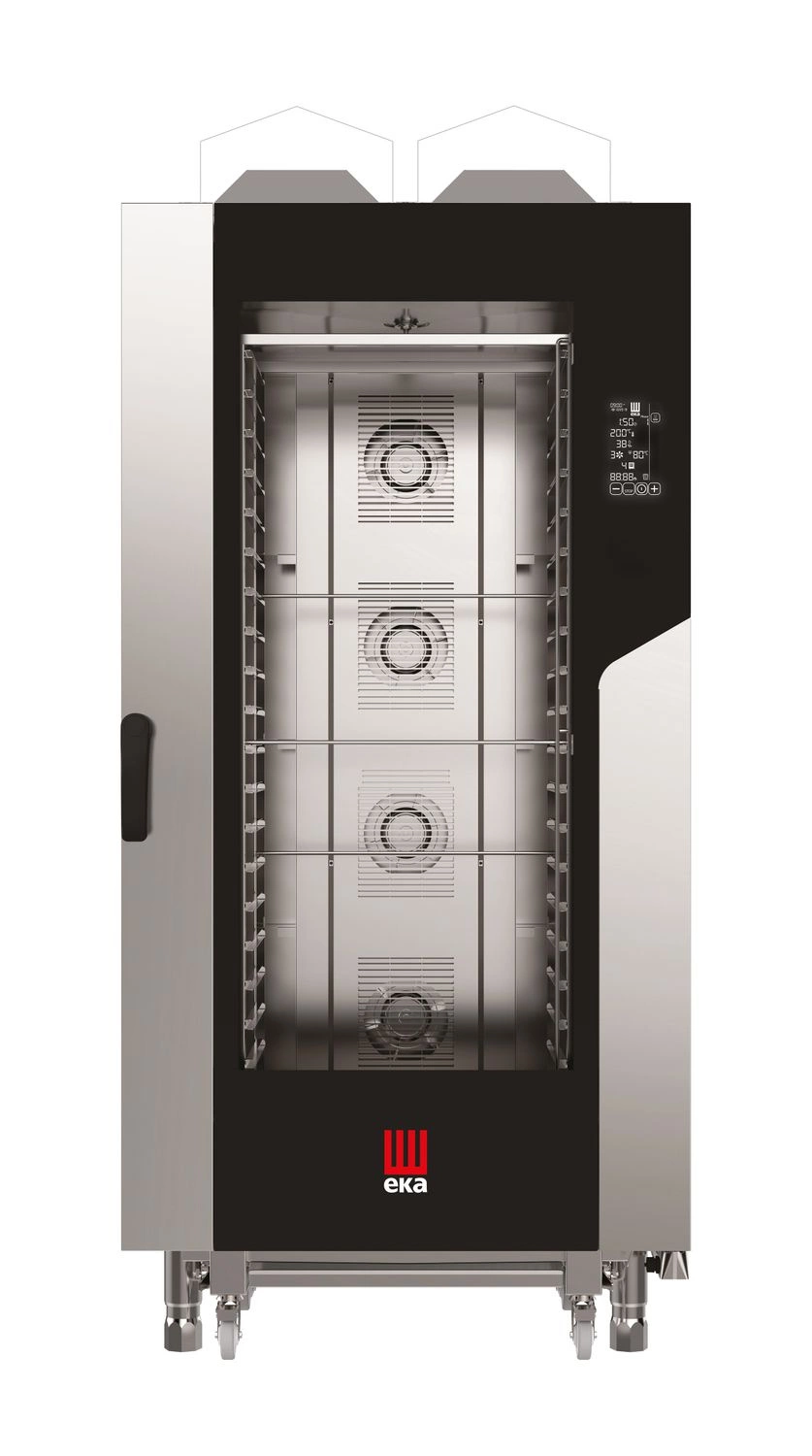 Plynová kombinovaná parní trouba Millenial Black Mask Gastro. Vhodné pro zásobníky 20 GN 1/1. Trouba má černý 7 dotykový ovládací panel, který se po vypnutí zcela schová do černých dvířek. Funkce Airflowlogic je řešením, kteréódíky přepracovanému designu odsavače zlepšilo cirkulaci vzduchu ventilátorem. Humilogic je nový zvlhčovací systém, který přivádí vodu přímo z ventilátoru. Tím je zajištěna vysoká úroveň vlhkosti, která snižuje spotřebu vody. Inovativním systémem je také Drylogic. Ventilór řízený počítačem kontroluje výměnu vzduchu v komoře a odstraňuje nadměrnou vlhkost. Teplota uvnitř vařeného výrobku se měří pomocí bodové sondy. Předehřev zahřeje komoru trouby na 30 stupňů, zatímco funkce Cooldown komoru ochladí, aby bylo možné zahájit další proces pečení. Nádoba USB usnadňuje nahrávání nových kuchařských receptů a údajů HACCP. Ideálně funguje také jako pečicí komora a banketka. Kuchařka pojme až 100 receptórů po 10 krocích. Regulace teploty od 30 stupňů;C-270 stupňů;C.