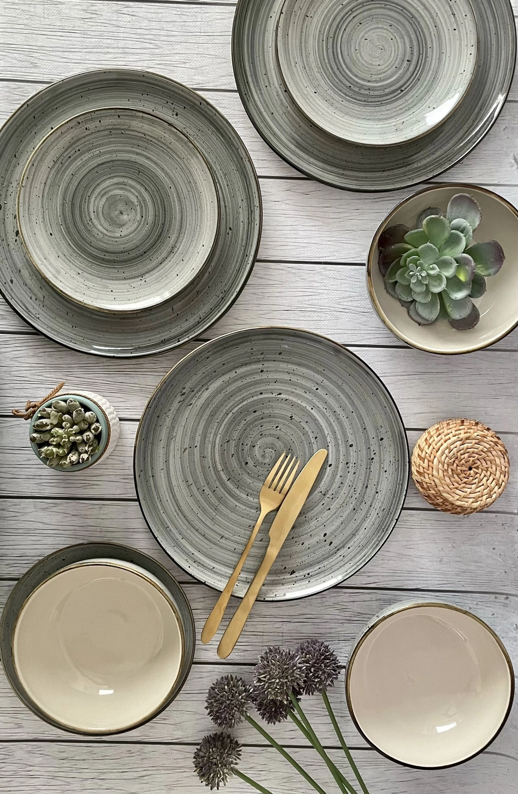 - Moderní rustikální styl – Šedá barva a nepravidelné provedení skvěle ladí s dalšími prvky stolního servisu a vytváří teplou, útulnou atmosféru v interiéru.