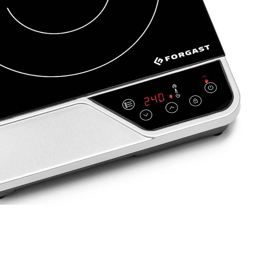 Vařič FORGAST FG09021 je vyroben z odolného plastu a skla, což zaručuje pevnost a snadnou údržbu. Velký, čitelný LCD displej umožňuje pohodlné čtení parametrů i z dálky nebo pod úhlem. Integrovaný systém kontroly teploty chrání zařízení před přehřátím a zámek nastavení zabraňuje náhodné změně parametrů během používání. Vařič funguje pouze s nádobím určeným pro indukci, což zajišťuje maximální efektivitu a bezpečnost vaření. V sadě se nachází pouze vařič, připravený k použití po připojení k elektřině.