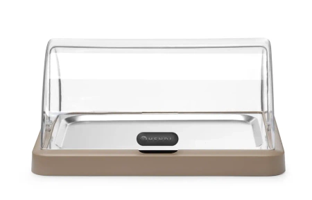 Tento moderní prezentační box je praktickým řešením pro vystavování a uchovávání čerstvých pokrmů, které vyžadují udržení snížené teploty. Jednoduchá chladicí vitrína roll-top Duo UNIQ navržená Robertem Bronwasserem vyniká elegantní béžovou barvou a funkční konstrukcí, ideální pro bufety v restauracích, hotelech nebo kavárnách. Průhledné víko typu roll-top a estetické zpracování činí z tohoto produktu výjimečný prvek každého moderního bufetového uspořádání.