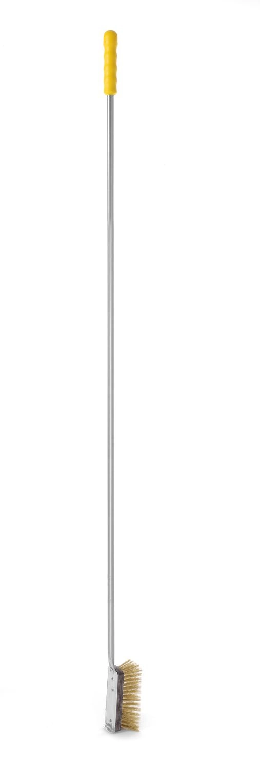 Kartáč na pizzu s mosaznými štětinami - vertikální. Má měkké štětiny, ocelovou škrabku.