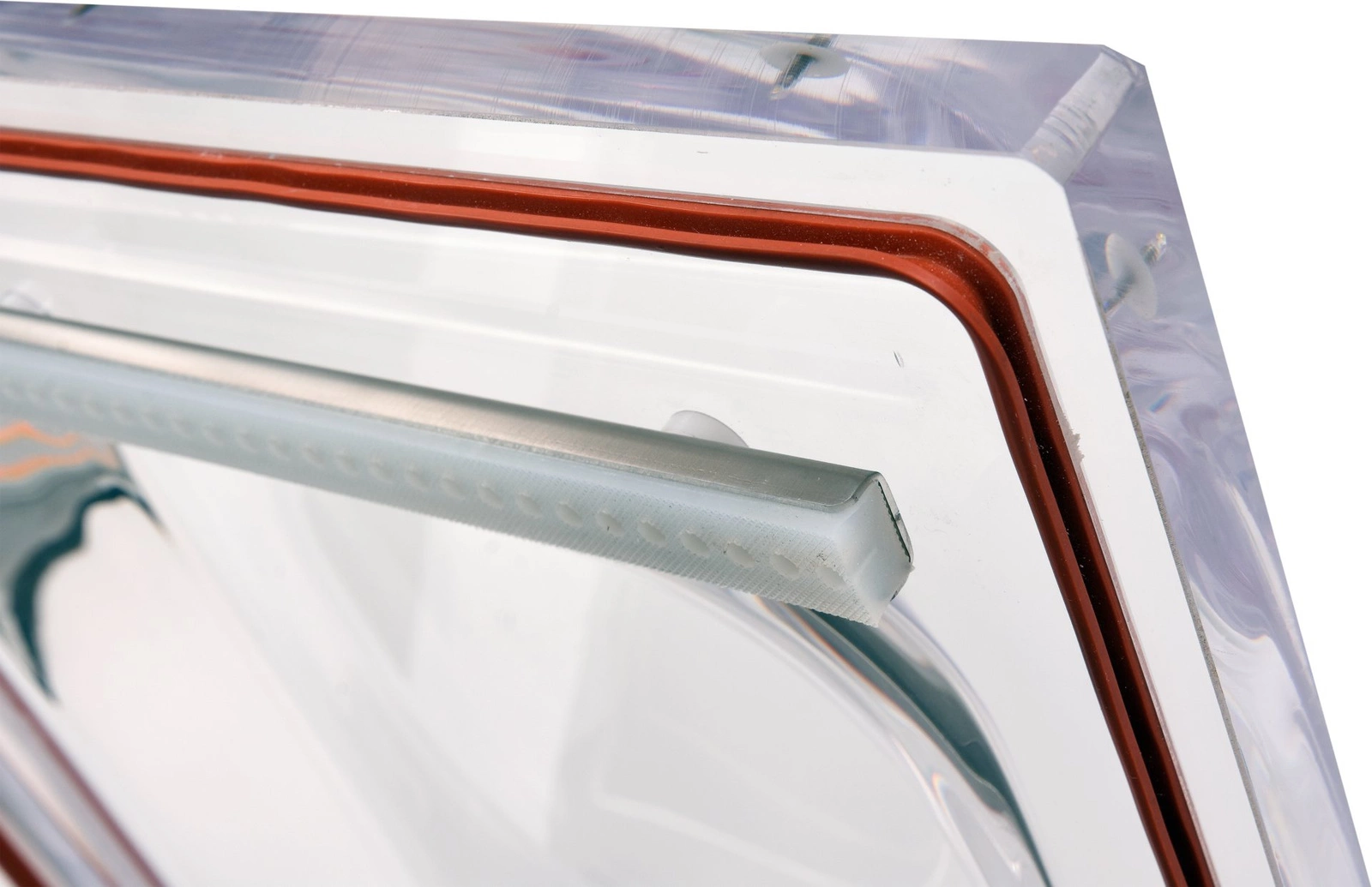 Silná komora z nerezové oceli o rozměrech 38,5x28x5(10) cm zajišťuje robustnost a odolnost. Zaoblené tvary usnadňují udržování čistoty komory. Víko z robustního plastu umožňuje sledovat proces balení a průhledná barva dále usnadňuje kontrolu. Balicí stroj se snadno používá díky plně automatickému procesu balení, nastavení doby uzavírání a přehlednému digitálnímu displeji a indikátoru tlaku, které umožňují plnou kontrolu nad procesem.