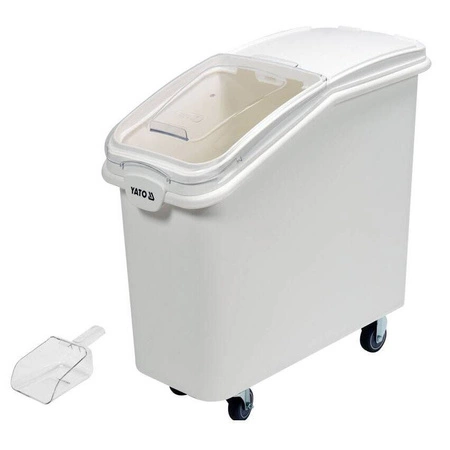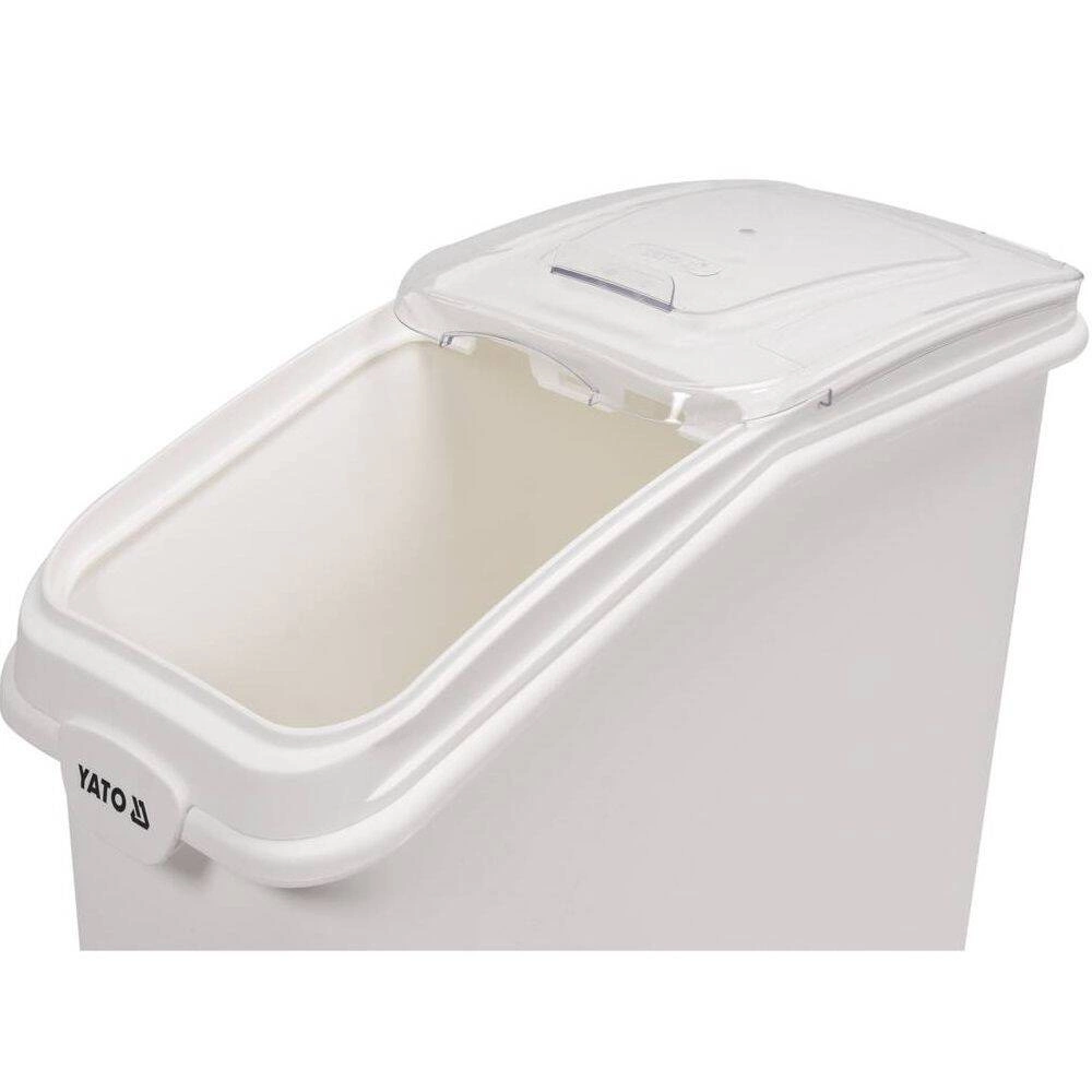 Cateringová nádoba pro skladování sypkých potravin s objemem 81 litrů od společnosti YATO. Nádoba je vyrobena z polypropylenu nejvyšší kvality, má zaoblené hrany a hladké stěny, je mimořádně odolná proti mechanickému poškození a snadno se čistí. Ideální pro skladování, přepravu a dávkování nejrůznějších sypkých produktů, jako je mouka, cukr, sól, rýže nebo kroupy. Určeno pro větší kuchyně, pekárny a cukrárny. Velký plnicí otvor, který je uzavřen posuvným víkem z odolného polykarbonátu, umožňuje snadné vysypání obsahu přímo z pytlů o hmotnosti až 25 kg nebo 50 kg. Objem nádoby umožňuje skladování velmi velkého množství výrobkůónapř. 77 kg cukru nebo 63 kg mouky.