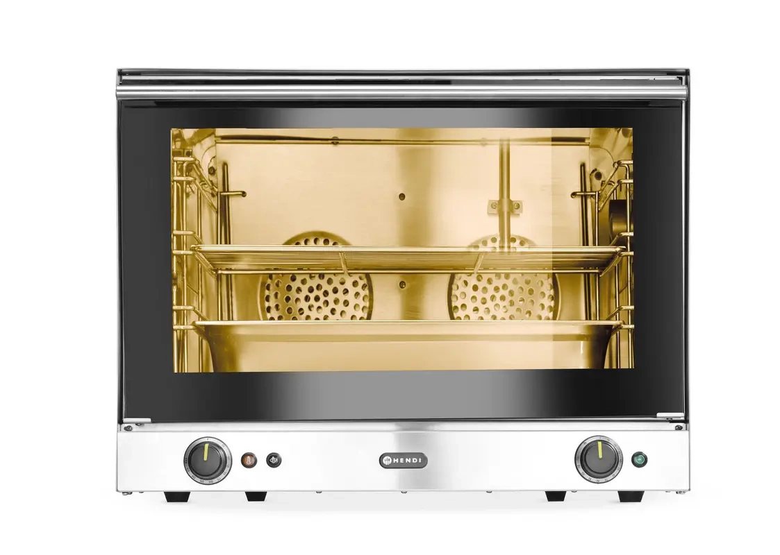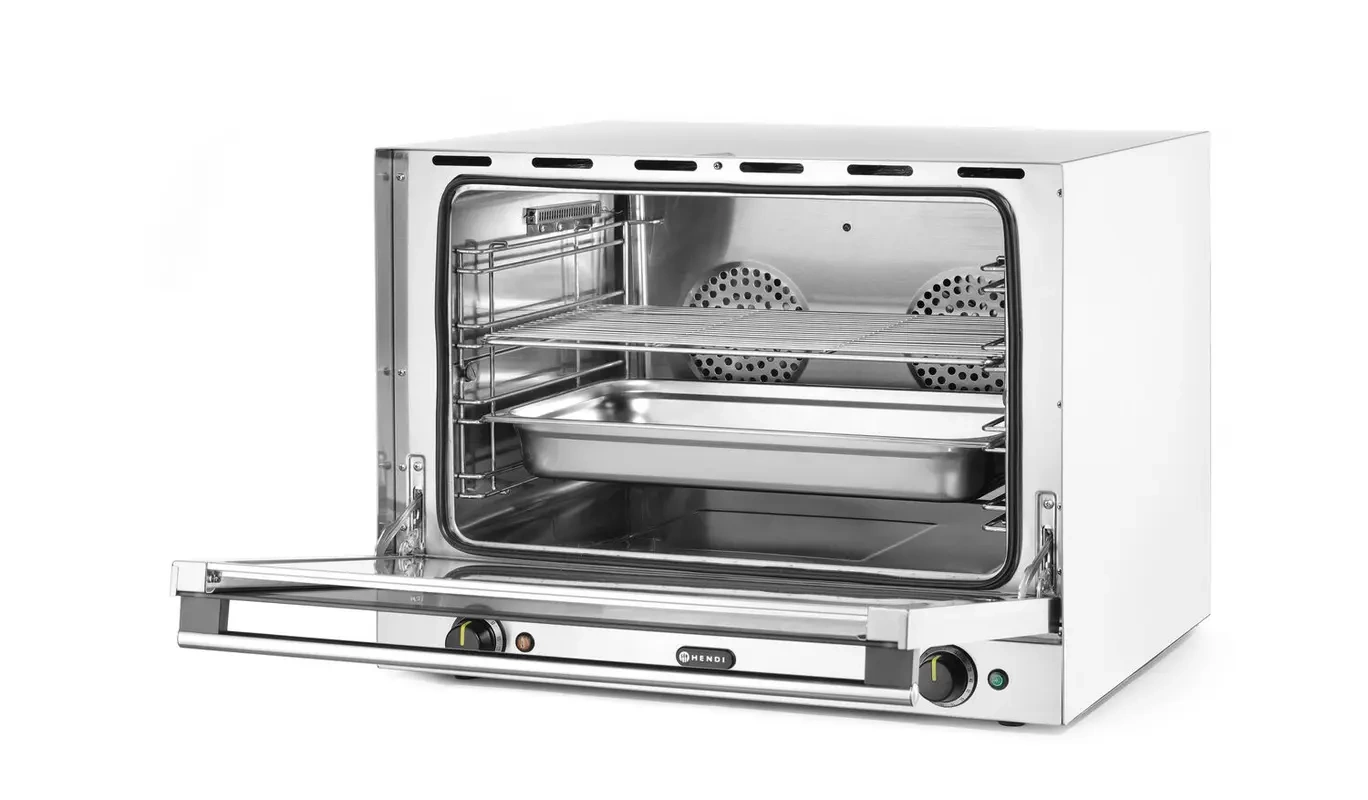 Konvekční trouba H100S HENDI se skvěle hodí do restaurací, pekáren, jídelen či cateringových služeb, kde je klíčová rychlost a opakovatelnost přípravy jídel. Přímé napařování komory umožňuje přípravu šťavnatých mas, pečiva s křupavou kůrkou a pečení vyžadující přesnou kontrolu vlhkosti. Zařízení je vybaveno časovačem do 120 minut, což usnadňuje organizaci práce v kuchyních s vysokým provozem. Součástí balení je GN 1/1 nádoba o hloubce 65 mm a GN 1/1 rošt, které rozšiřují možnosti využití trouby pro různé kulinářské techniky.