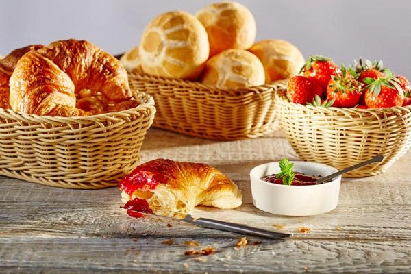 - Tvar: oválný – Usnadňuje aranžování pečiva na stole a šetří místo.