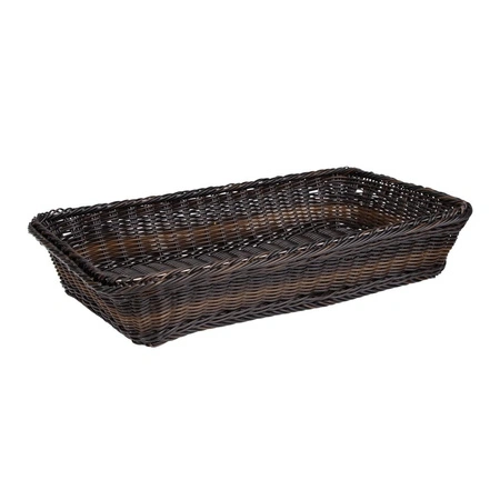 Obdélníkový koš na pečivo vyrobený z odolného polypropylenu je praktickým řešením pro servírování pečiva v restauracích, hotelech a při snídaních formou bufetu. Vyniká moderním vzhledem a stabilní konstrukcí, díky čemuž je ideální pro každodenní používání. Jeho univerzální rozměry umožňují pohodlné vystavení různých druhů pečiva.