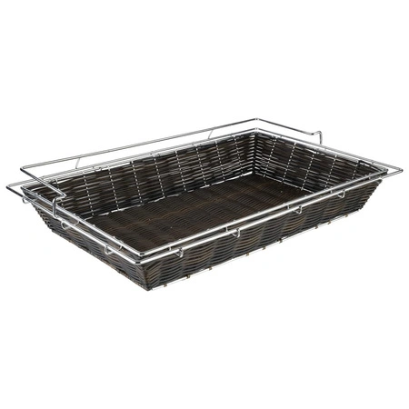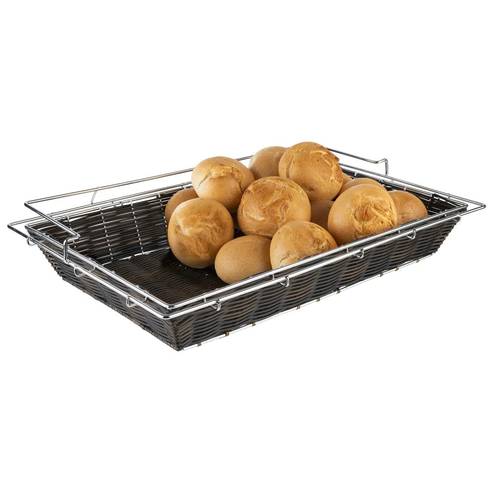 Tento obdélníkový košík na pečivo představuje praktické a pevné řešení pro servírování pečiva při bufetech, hotelových snídaních či cateringových akcích. Produkt se vyznačuje odolnou konstrukcí z polypropylenu a upevňovacím rámem z nerezové oceli, který účinně brání posouvání košíku během používání. Díky univerzálnímu tvaru a estetickému vzhledu je ideální jak pro profesionální gastronomická zařízení, tak i do domácí kuchyně.
