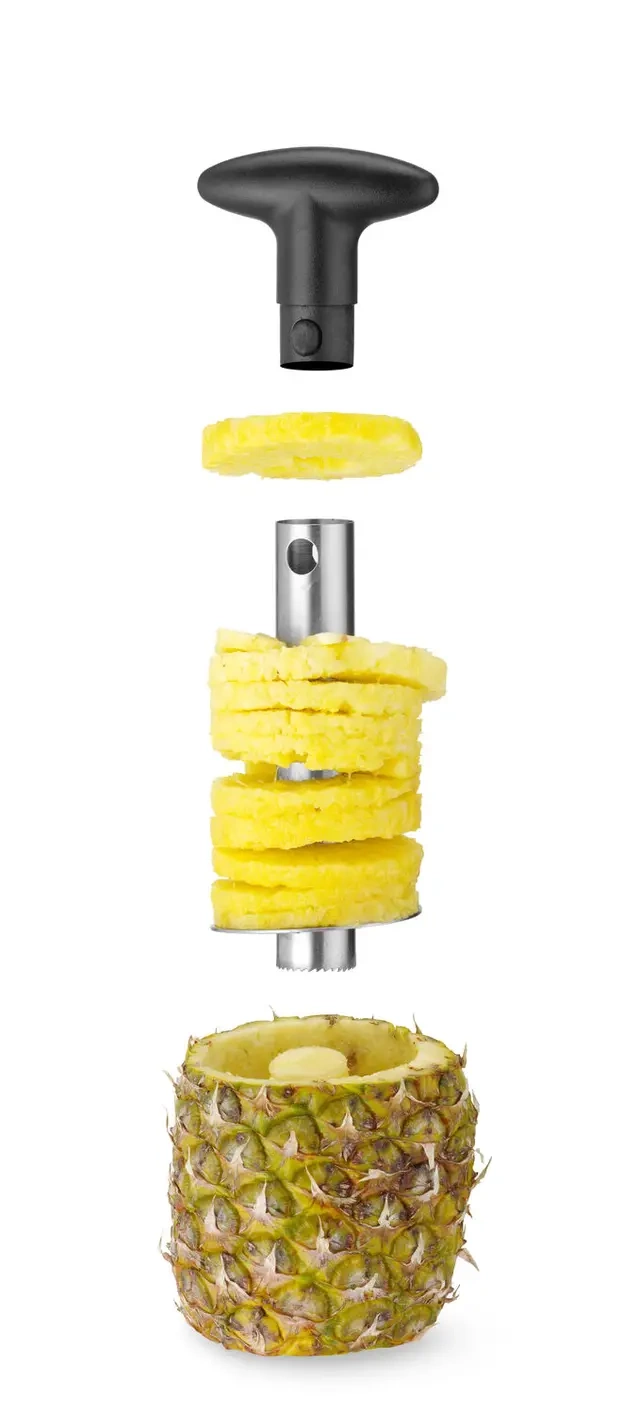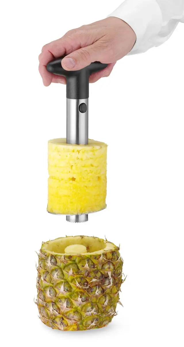 Tento funkční nástroj je vhodný jak do domácí kuchyně, tak i do restaurací, barů nebo hotelů. Skvěle se hodí k přípravě čerstvých ovocných snacků, dekorací dezertů nebo přísad do koktejlů. Centrální jádro z nerezové oceli umožňuje rychlé a přesné vydlabání i nakrájení ananasu na rovnoměrné plátky, přičemž minimalizuje ztráty dužiny. Ergonomická rukojeť z ABS je navržena tak, aby uživatel mohl pohodlně a bezpečně provést celý proces jedním pohybem. Jednoduchá konstrukce usnadňuje demontáž a čištění po skončení práce.