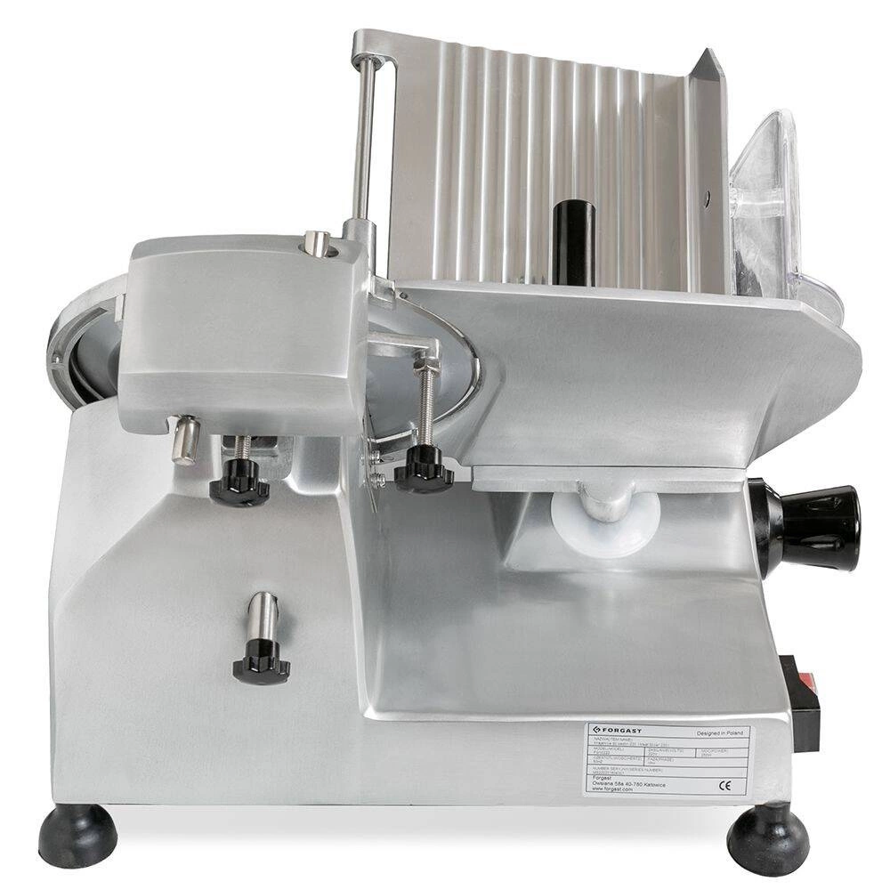 Kráječ na uzeniny FORGAST FG10222 je profesionální zařízení určené pro přesné krájení uzenin a sýrů. Vybavený ocelovým nožem o průměru 22 cm je vhodný jak pro gastronomii, tak pro řeznictví či cateringové firmy. Jeho hlavní přednosti jsou robustní konstrukce a možnost regulace tloušťky plátku, což umožňuje přizpůsobení zařízení různým potřebám.