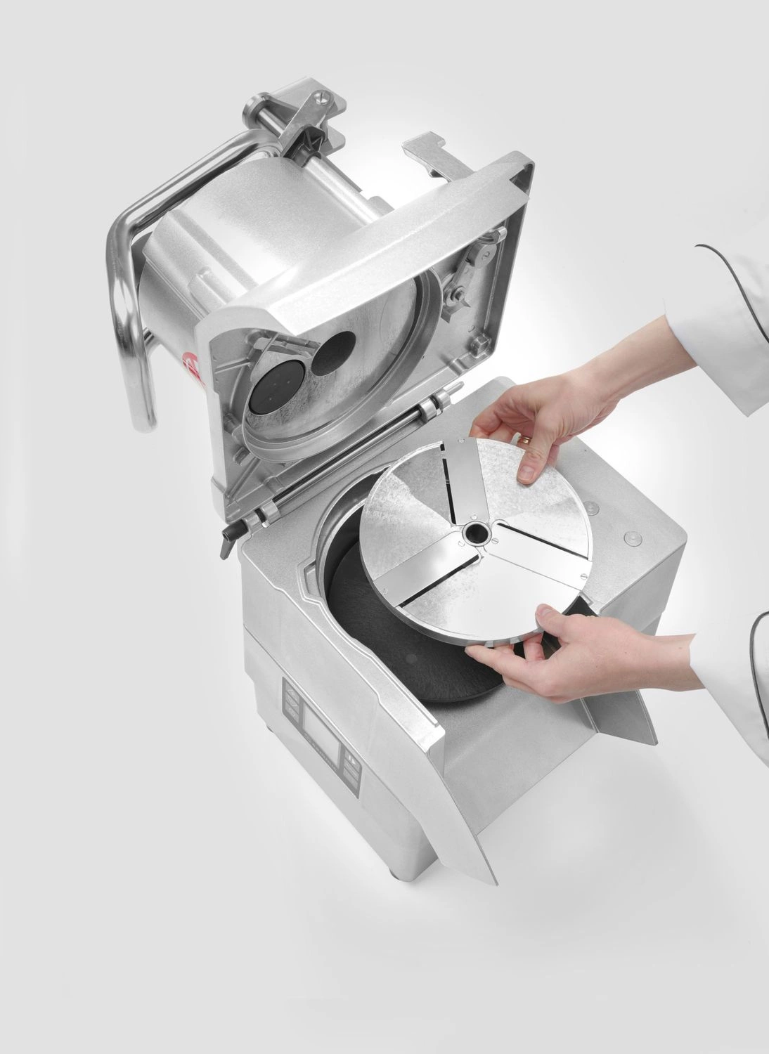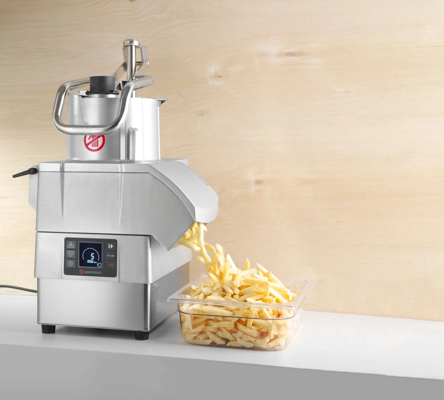 Skartovač SAMMIC CA-4V (5 rychlostí). . Vyrobeno z nerezové oceli a potravinářských materiálů. Je vhodný k mletí jemné zeleniny a k jejímu tvarování (k dispozici jsou disky). Krouhač je vhodný také pro krouhání malých hlávek zelí. Výkonný motor vybavený "Brushless" technologií. Regulace výkonu krouhání. Nosnost od 200 do 650 kg. Rychlost od 300 do 1000 otáček za minutu. Snadná údržba hygieny díky odnímatelnému víku s přítlačným lisem. Otvor hlavy 286 cm2. Profilovaný vyprazdňovací disk pro zvýšení výkonu drtiče. Boční otvorór na krájenou zeleninu umožňuje umístění přístroje na úzkou pracovní desku. Provoz motoru se zablokuje při sejmutí víka nebo zvednutí přítlačného lisu.