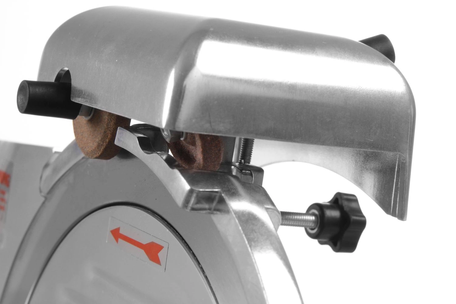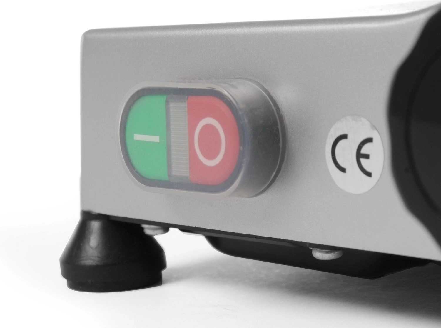 Kráječ HENDI Kitchen Line 250 je vyroben z hliníku, což zajišťuje jeho odolnost vůči korozi a snadnou údržbu čistoty. Hladký povrch a odšroubovatelná vodicí lišta výrazně usnadňují čištění po práci. Nůž z nerezové oceli s velkým průměrem umožňuje rychlé a přesné krájení uzenin a masa, zatímco vestavěný brousek pomáhá udržet optimální ostrost po dlouhou dobu používání. Samostatná, jasně označená tlačítka zapnutí a vypnutí a dodatečný kryt nože zvyšují bezpečnost obsluhy. Vzduchem chlazený motor umožňuje intenzivní práci bez obav z přehřátí.