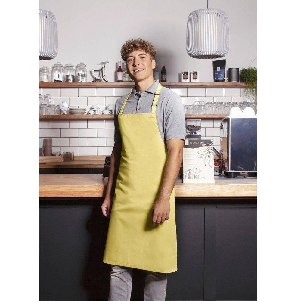 Kuchařská zástěra Basic značky Karlowsky. Slunečně žlutáóbarva. Vyrobeno v 65 % polyester / 35 % bavlna. . Diagonální vazba. Rozměry 75x90 cm. Zástěra s popruhy z materiálu zástěry se zesílenými napínacími body - popruh na krk se sponou pro nastavení délky cca 70 cm. Lze prát v pračce a čistit chemicky. Vhodné k žehlení.