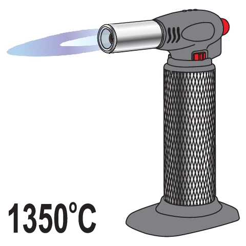 Plynový hořák s piezoelektrickým zapalováním, napájený plynem do zapalovačů (butan nebo propan-butan). Hliníkové tělo s protiskluzovým povrchem zajišťuje pohodlí a bezpečnost při používání. Hořák dosahuje teploty až 1350 °C, takže je ideální pro zapalování krbů, grilů a vařičů.
