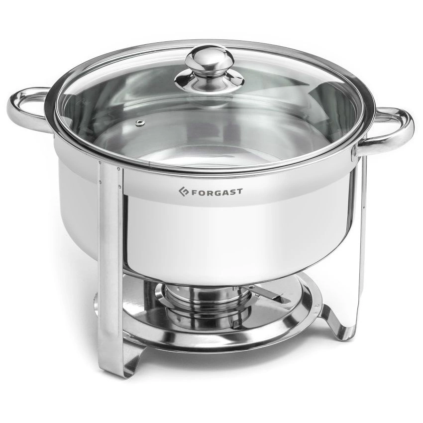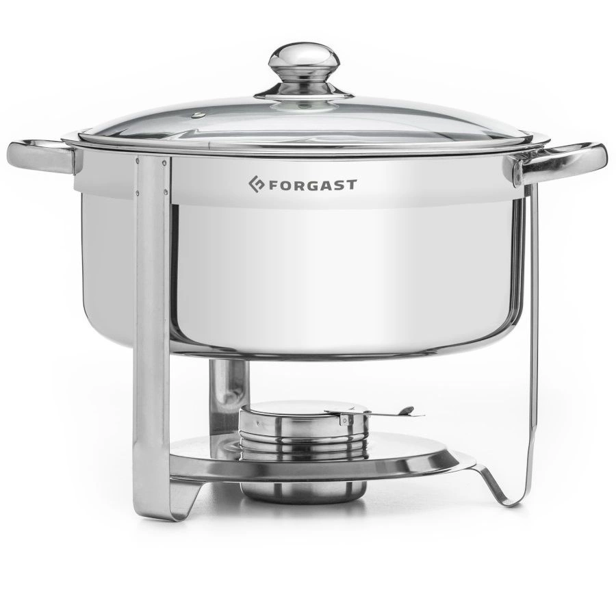 Kulatý ohřívač 7,5 l na palivo se skleněnou poklicí FORGAST FG03275V1 je kombinací pevnosti, funkčnosti a estetiky, kterou ocení jak profesionálové, tak i osoby pořádající větší společenské akce. Díky použití vysoce kvalitní nerezové oceli a promyšlené konstrukci zařízení zajišťuje spolehlivost a komfort práce v jakýchkoli podmínkách. Možnost ohřevu na palivo z něj činí mimořádně univerzální řešení pro různorodé gastronomické využití a zaručuje plnou svobodu při práci a spokojenost s používáním.