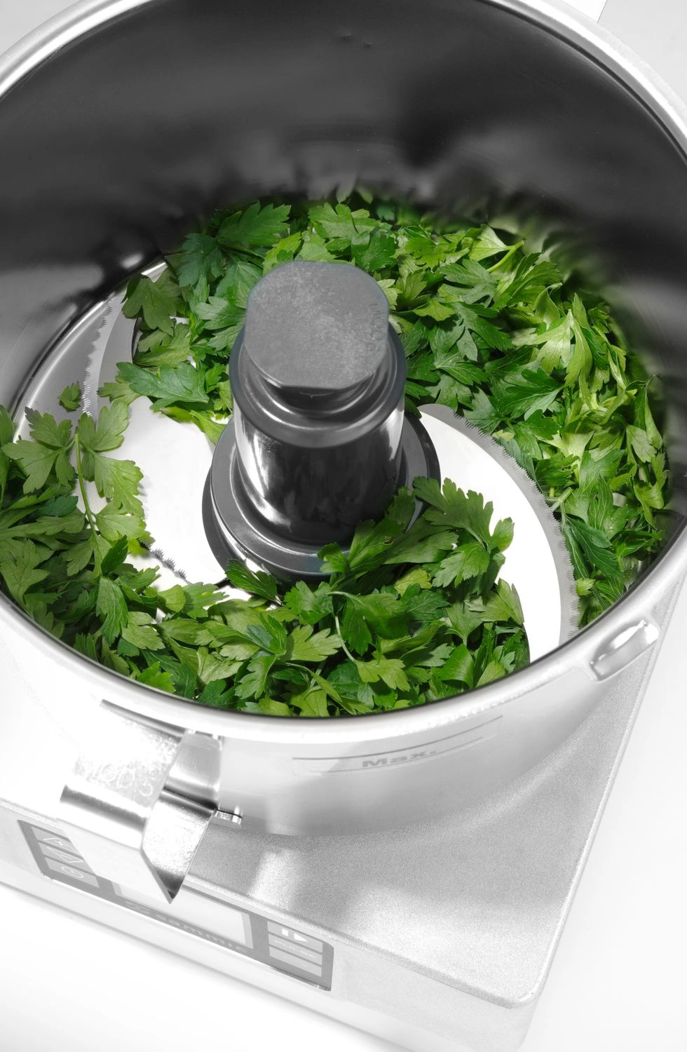 • Široký rozsah otáček: Zařízení umožňuje práci v rozsahu od 300 do 3000 ot./min, což umožňuje perfektně přizpůsobit režim práce druhu zpracovávaných surovin – od jemného sekání bylinek až po intenzivní mletí masa.