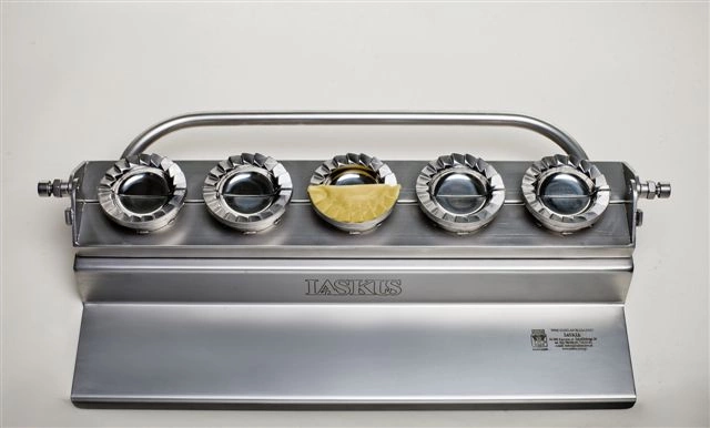 Ruční pirohovačka LASKUS byla navržena pro ty, kteří oceňují domácí výrobky a efektivitu práce v kuchyni. Díky možnosti připravit pět pirohů najednou je zařízení ideální při rodinných setkáních, svátečních přípravách i v malých gastronomických provozech. Pevná konstrukce z nerezové oceli a precizně zpracované formy zaručují, že každý piroh bude mít rovnoměrný, estetický okraj. Vykrajovač je snadno ovladatelný a dlouhá rukojeť umožňuje pohodlné a rychlé uzavření těsta s náplní.