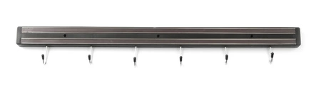 Magnetický proužek pro zavěšení nožů. Vyrobeno z polypropylenu. Dva magnetické proužky. 6 háčků.