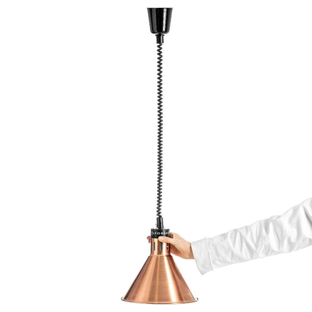 Měděná ohřívací lampa na pokrmy, kuželová, 0,25 kW, nastavitelná výška 60-180 cm | FORGAST FG03343