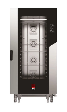 Dveře s dvojitým prosklením jsou opatřeny zámkem otevírání, který chrání obsluhu před nekontrolovaným pohybem. Těsnění dvířek je vyrobeno z odolného silikonu, který si snadno vyměníte sami. Žlábek pod dvířky. LED osvětlení komory. Izolovaný plášť trouby šetří elektrickou energii. Komora i plášť trouby z nerezové oceli. Vyrovnání trouby je možné díky nastavitelným nožičkám. Je nutné připojení k elektřině, upravené vodě a kanalizaci.