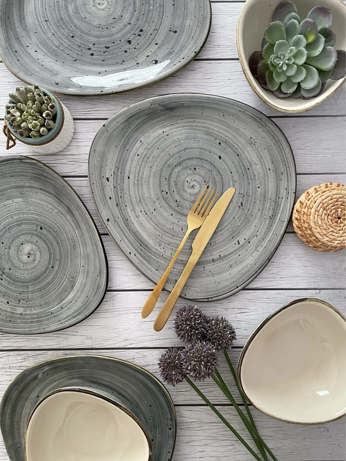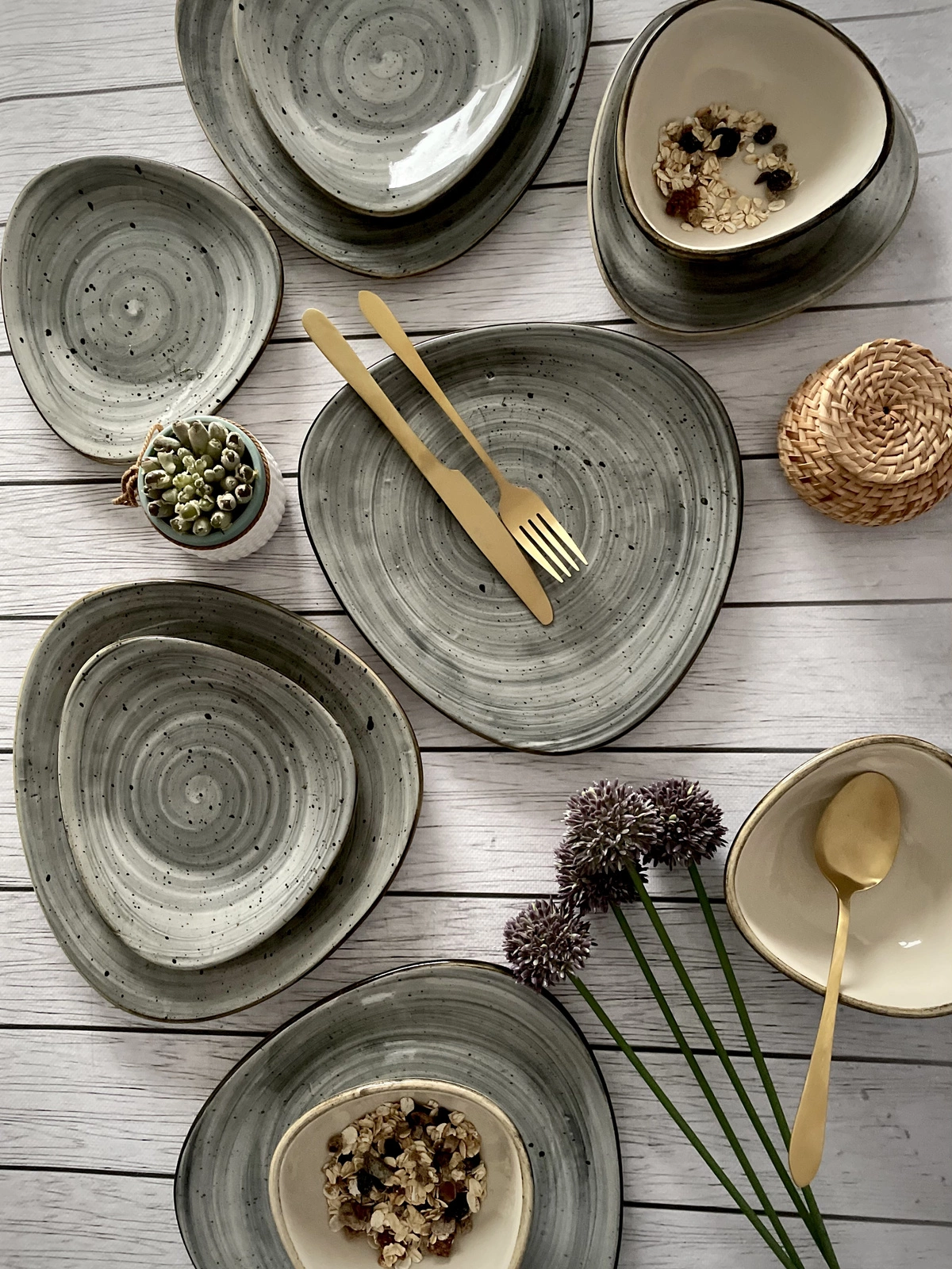 Miska Musli Delta Rustick v šedé barvě je malá, ale velmi stylová miska o objemu 0,3 l, vyrobená z kameniny. Vyznačuje se unikátním, ručně malovaným povrchem a zaobleným tvarem s charakteristickými rohy. Ideální na podávání müsli, občerstvení nebo polévek jak doma, tak v restauracích, které si cení originality a přírodních materiálů.