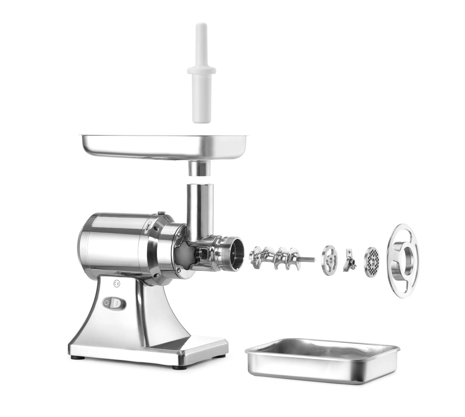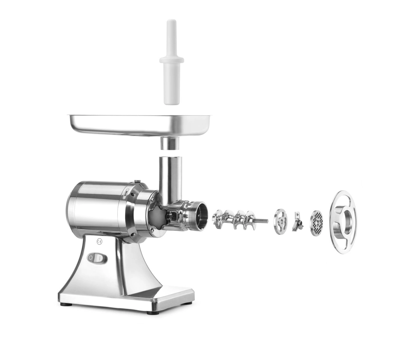 Mlýnek na maso HENDI Profi Line 1/2 UNGER 12. Je určen pro profesionální použití a je ideální pro řeznictví, supermarkety, velké jídelny, restaurace a další stravovací zařízení. K mletí jakéhokoli druhu vykostěného masa. Přibližný výkon až 150 kg/h.