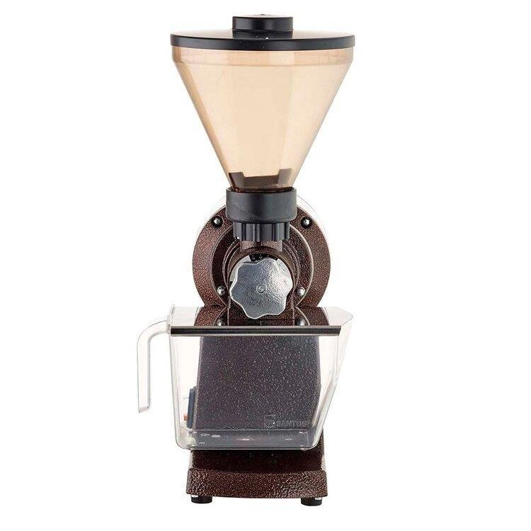 Mlýnek SANTOS 1P je vybaven stabilním lakovaným tělem v hnědé barvě, které nejen zajišťuje odolnost a ochranu proti poškození, ale také vypadá velmi esteticky v každé kuchyni nebo kavárně. Díky robustní konstrukci se zařízení během provozu neposouvá, což zvyšuje bezpečnost používání. Mlýnek je jednoduchý na obsluhu a jeho klasický vzhled se hodí jak do moderních, tak i tradičních interiérů.