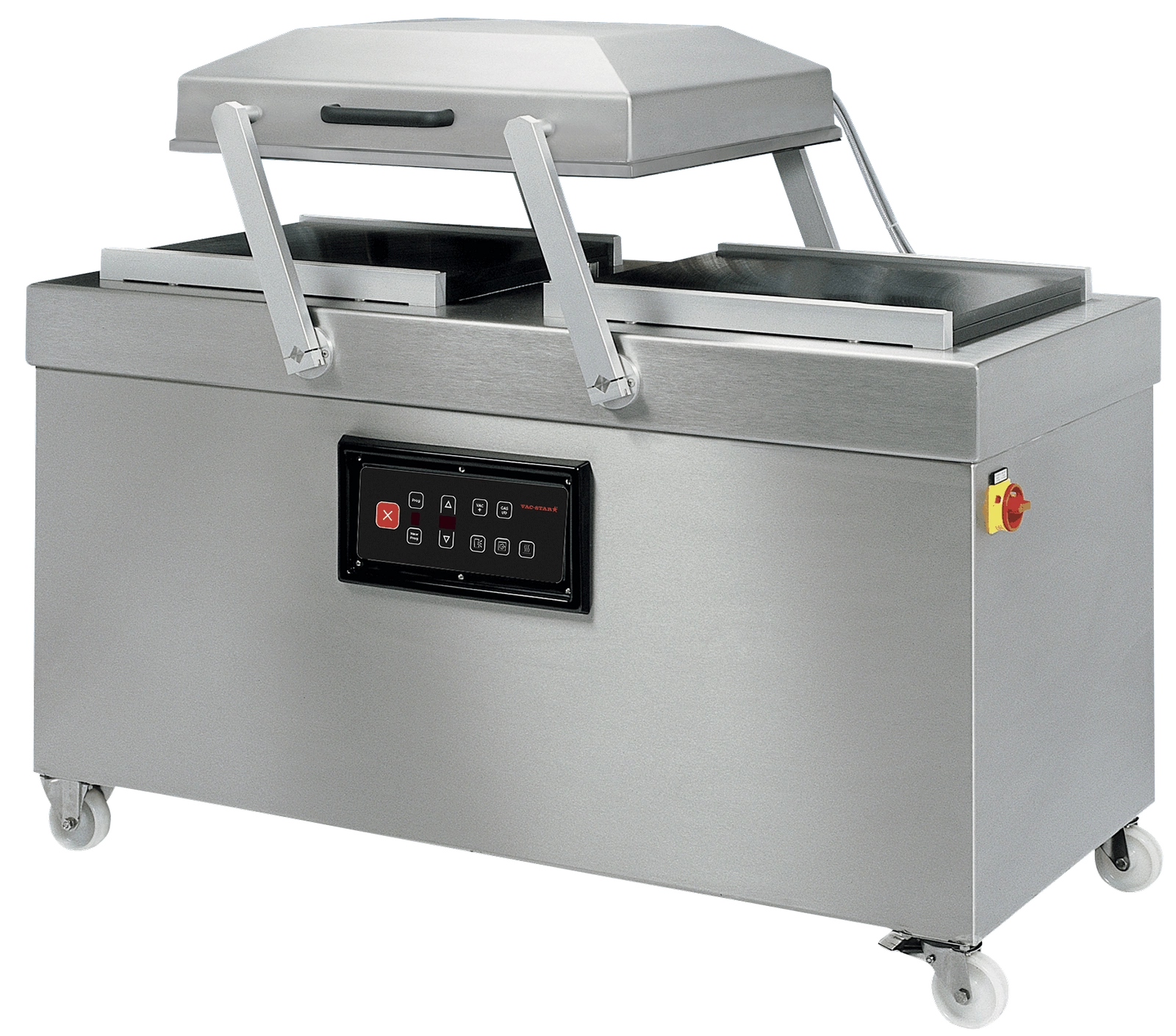 Balicí stroj je vybaven výkonnou vývěvou o kapacitě 100 m³/h, která zajišťuje rychlé a účinné odstranění vzduchu a dosahuje až 99,98% vakua. Díky výklopnému víku a dvěma komorám umožňuje nepřetržitý provoz, čímž výrazně zvyšuje efektivitu balení.