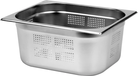 Nádoba GN 1/2 s hloubkou 15 cm je nepostradatelným prvkem vybavení každé profesionální kuchyně. Vyrobena z odolné nerezové oceli, má perforované dno, což umožňuje efektivní odvod tekutin. Ideální pro skladování, cezení a přípravu různých potravin jak v restauracích, tak v cateringových firmách.