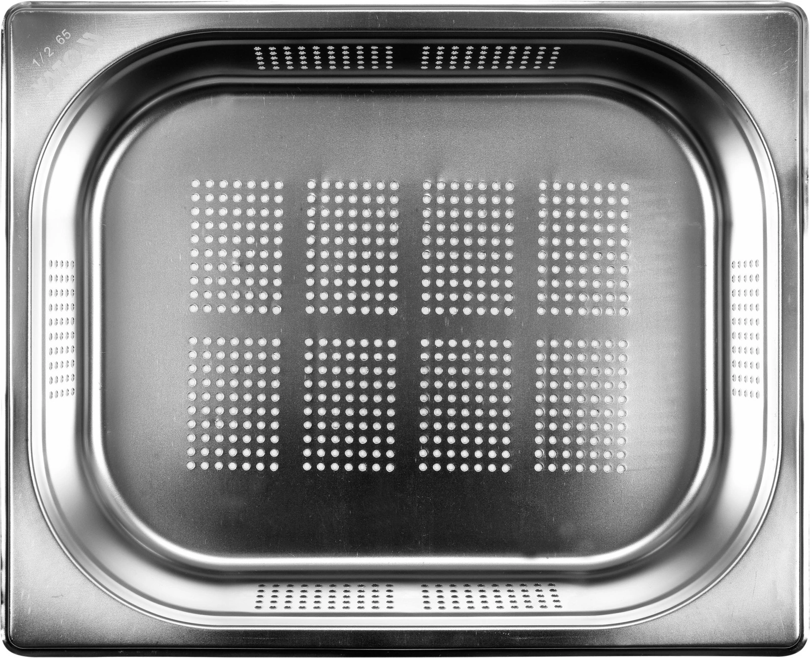 Perforovaná nádoba GN 1/2 s matným povrchem se osvědčí v profesionálních kuchyních, kde je důležitá rychlost práce a vysoká kvalita skladování produktů. Díky perforaci je nádoba ideální pro cezení zeleniny po blanšírování, servírování pokrmů vyžadujících odkapání, jako jsou hranolky nebo vařené těstoviny. Nerezová ocel zajišťuje bezpečnost při styku s potravinami a snadné čištění po intenzivním používání. Rohy nádoby jsou zaoblené, což usnadňuje jak vyjímání produktů, tak mytí samotné nádoby.