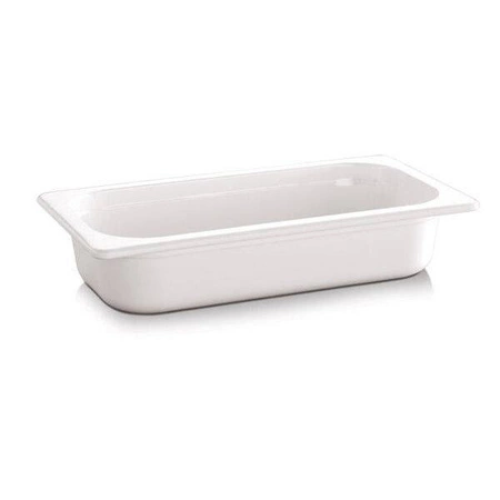 Kontejner GN 1/3 o hloubce 10 cm vyrobený z vysoce kvalitní melaminu je praktickým a odolným řešením pro skladování a prezentaci potravin. Díky klasické bílé barvě je kontejner ideální jak pro restaurace a hotely, tak i pro catering, kde podtrhuje estetiku servírovaných pokrmů. Jeho univerzálnost umožňuje použití jak při snídaňových bufetech, tak i ke skladování surovin v chladničce.
