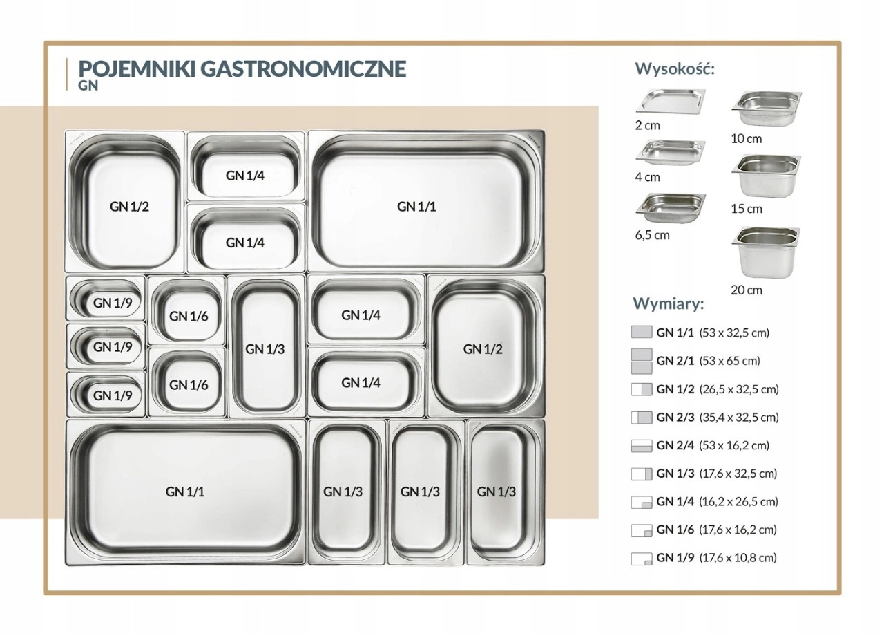 Gastronomická nádoba vyrobená z nerezové oceli je univerzálním vybavením profesionálních kuchyní, jídelen nebo cateringových firem. Vyznačuje se vysokou odolností proti korozi, pevností a všestranností použití. Díky hloubce 6,5 cm je ideální jak pro skladování, tak pro přepravu a zpracování potravin.
