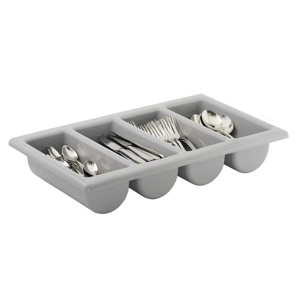 Šedý zásobník na příbory GN 1/1 APS 40011 je praktický a odolný organizér určený pro přehledné uložení příborů v gastronomických provozech, jídelnách, bufetech a při cateringových akcích. Produkt se vyznačuje pevnou konstrukcí z odolného polypropylenu a univerzální estetickou šedou barvou, která zapadne do každé kuchyně či jídelního prostoru.