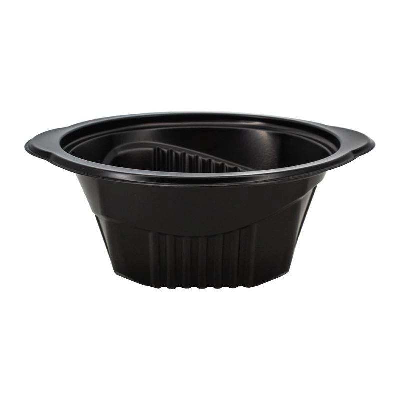 Nádoba na polévku o objemu 350 ml cm pro servírování polévek s sebou. Nádoba je vyrobena z černého recyklovatelného polypropylenu. Určena k uzavírání pokrmů s sebou v uzavíracích strojích.