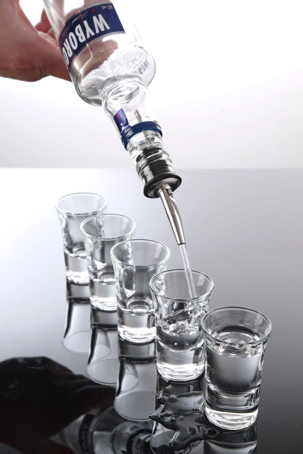 Dlouhé nalévátko s pomalým průtokem z nerezové oceli.