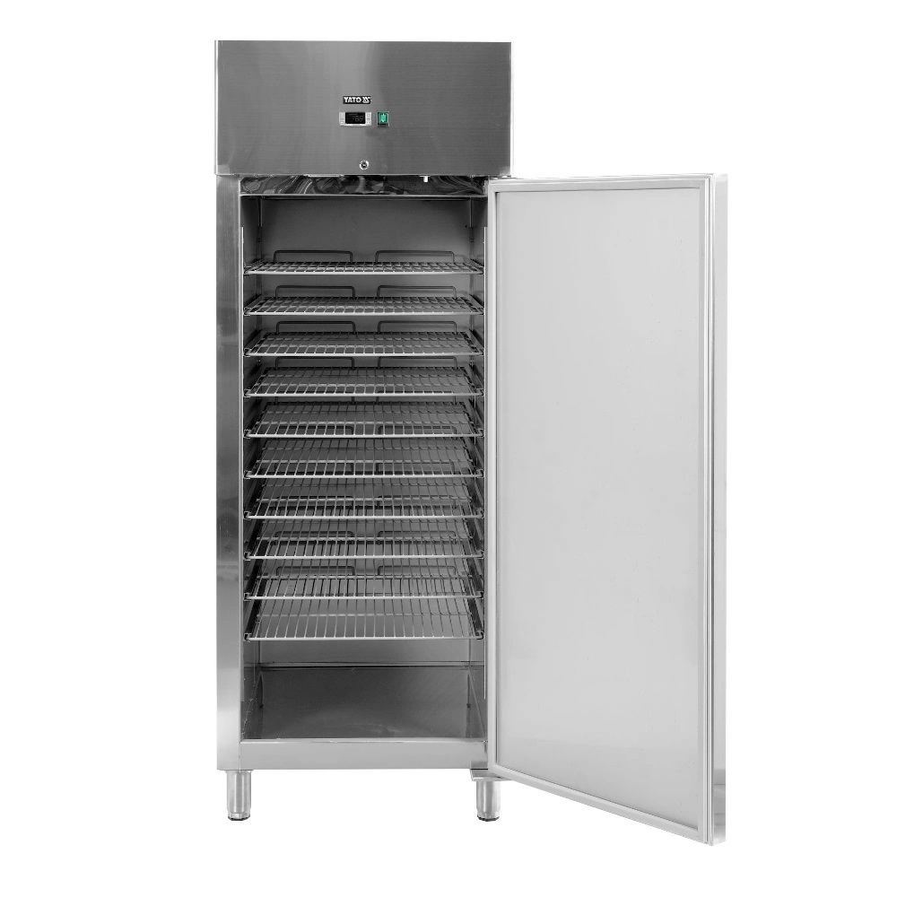 Nerezová mrazicí skříň určená pro skladování vaniček na zmrzlinu. Objem 737 l. Vnitřní i vnější plášť je vyroben z nerezové oceli ss201. Samozavírací dveře se zámkem, vybavené pohodlnou rukojetí pro otevírání. Možnost výměny magnetických těsnění. Skříň je vybavena 10 roštovými policemi s povrchovou úpravou o rozměrech 60x80 cm a nosností 40 kg – při rovnoměrném rozložení. Možnost 34stupňové regulace výšky polic. Komora je vybavena LED osvětlením. Horní chladicí agregát využívá chladivo R290, je určen pro provoz ve 4. klimatické třídě – při maximální okolní teplotě 30o C a relativní vlhkosti 55 %. Zařízení je vybaveno elektronickým ovladačem s digitálním displejem teploty. Skříň je ideální pro gastronomické provozy s prodejem zmrzliny.