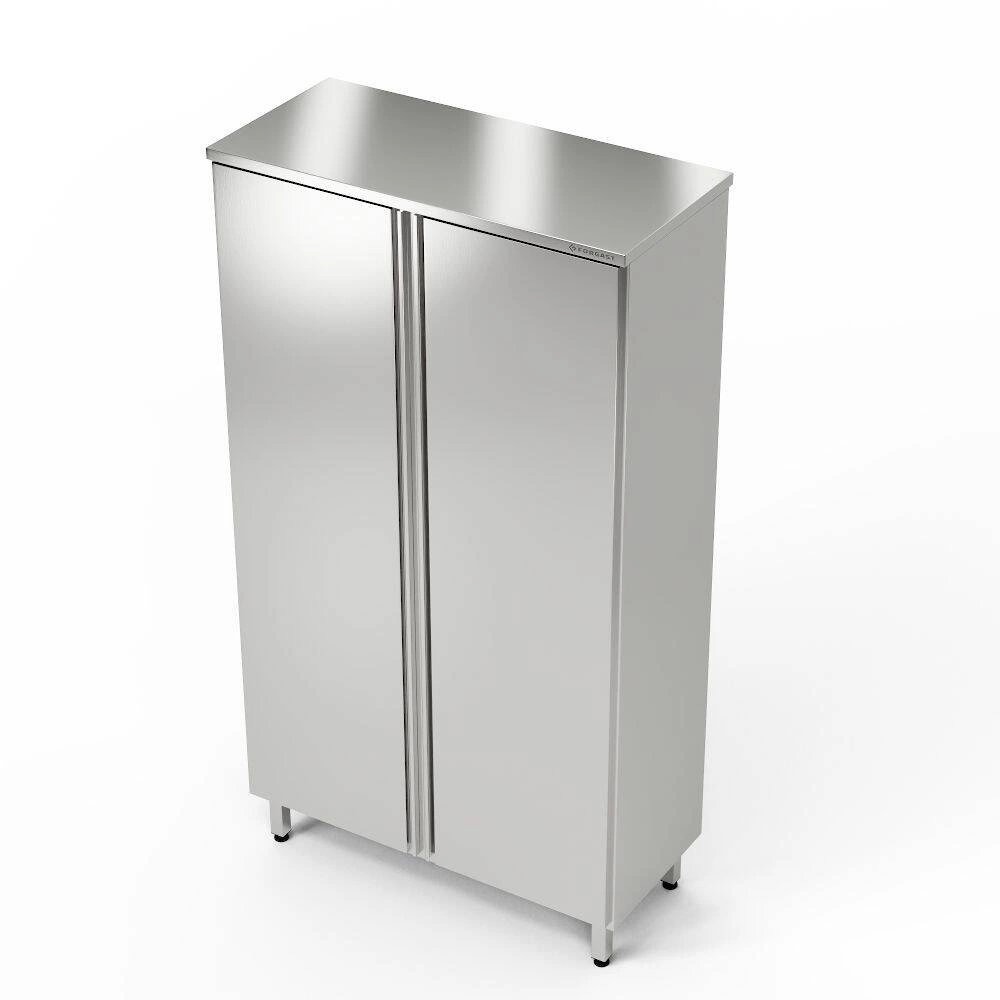 Průchozí skříň o rozměrech 100x50x200 cm z nerezové oceli J4. Skříň je vybavena 3 pólavičkami. Křídlové dveře.