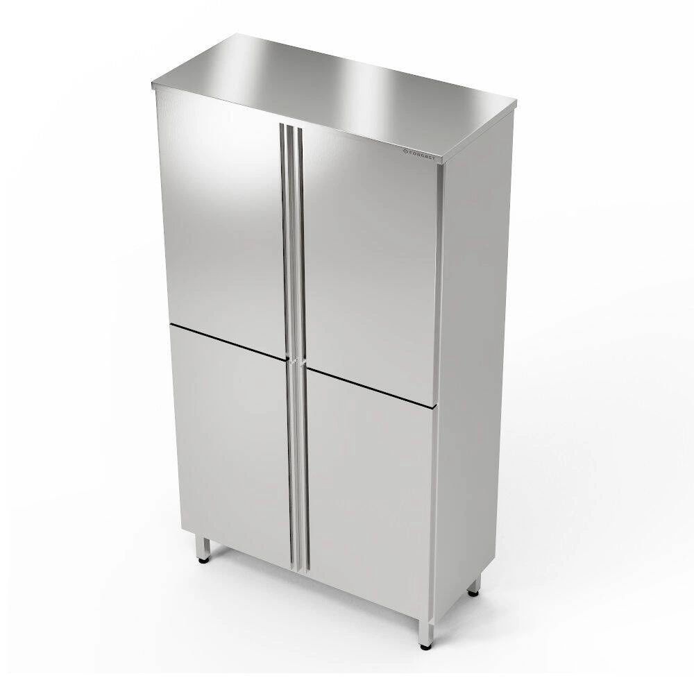 Průchozí dělená skříň o rozměrech 120x70x180 cm z nerezové oceli J4. V každé části skříně jsou 2 pólavice.