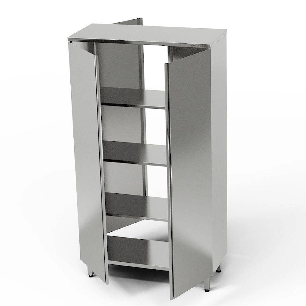 Průchozí skříň o rozměrech 90x70x200 cm z nerezové oceli J4. Skříň je vybavena 3 pólavičkami. Křídlové dveře.