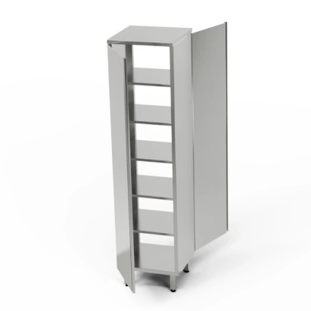 Úložná skříňSkříňka o rozměrech 60x70x200 cm je ideálním vybavením kuchyňského zázemí, které je ideální pro všechna stravovací zařízení, jako jsou jídelny, bary, restaurace, vývařovny nebo rychlé občerstvení. Je vyrobena z vysoce kvalitní nerezové oceli, která zaručuje dlouhou životnost, odolnost proti korozi a ochranu proti mechanickému poškození. Horní deska skříně je vyrobena z plechu o tloušťce 0,8 nebo 1,0 mm, který zajišťuje pevnou a stabilní pracovní plochu. Výklopná dvířka umožňují pohodlný přístup do vnitřku skříně. Nohy skříňky jsou opatřeny plastovými nožičkami s rozsahem nastavení, které umožňují vyrovnání skříňky v kuchyni. To má zásadní význam pro udržení stability a róvého vyvážení. Skříňka má 5 skříněk, které poskytují dostatek úložného prostoru pro různé kuchyňské potřeby. Je dokonalým řešením pro efektivní organizaci v gastronomii.