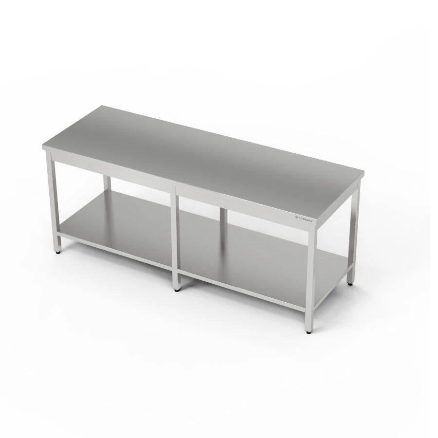 Centrální pracovní stůl s półk o rozměrech 270x70x85 cm z nerezové oceli J4.