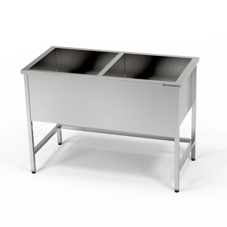 Nerezový dvoukomorový dřez FORGAST je profesionální gastronomické umyvadlo, navržené pro intenzivní používání v restauracích, jídelnách a zdravotnických zařízeních. Vyznačuje se dvěma prostornými komorami o hloubce 40 cm a vysokou odolností proti korozi díky použití trvanlivé nerezové oceli. Jeho univerzální konstrukce se osvědčí jak ve velkých provozech, tak i v menších kuchyňských prostorech.